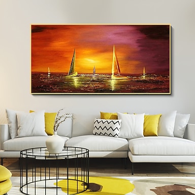 Peinture à l'huile faite à la main toile art mural décoration moderne voilier coucher de soleil paysage marin pour la décoration intérieure roulé sans cadre peinture non étirée