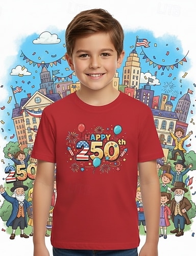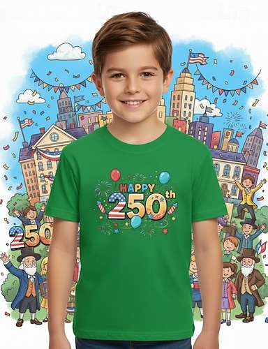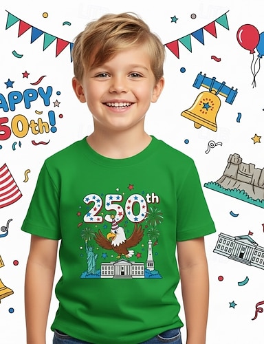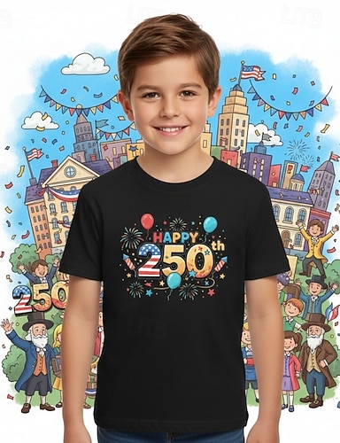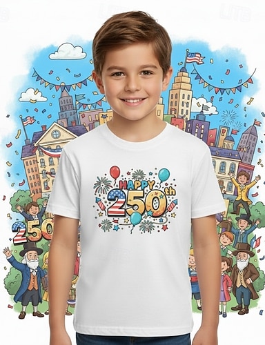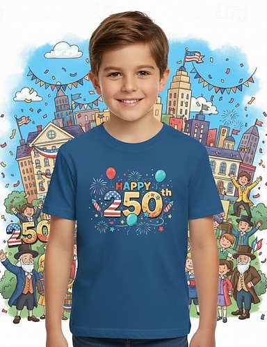 100% Coton Enfants Garçons Bleu Noir Blanche Graphique 250e anniversaire T-shirt Chemisier Col Rond Manche Courte Extérieur Tenue Quotidienne Mode Streetwear Designer Impression Été Printemps