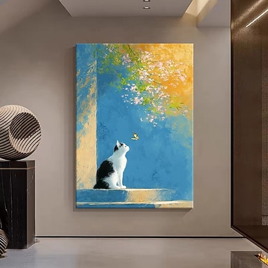 Peinture à l'huile sur toile, réalisée à la main, représentant un paysage printanier avec de jolis chats. Décoration murale idéale pour la maison. Toile roulée, sans cadre ni châssis. Possibilité de