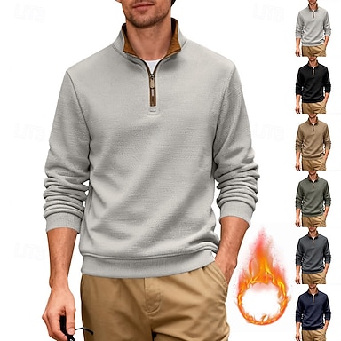 Homme Sweat-shirt Sweat-shirt en polaire Pull Sweat-shirt quart de fermeture éclair Noir Vert Véronèse bleu marine Kaki Gris Claire Demi-zip Uni Occasionnel Quotidien Sport & Loisir Streetwear