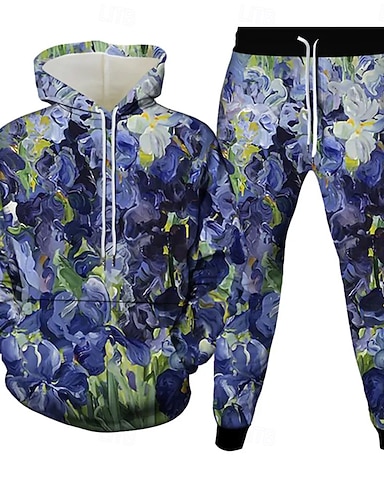 Homme éclabousser 2 pièces Ensembles de sweat-shirts 3D Survêtement Sweat à Capuche manche longue Pantalon long À capuche Décontracté Quotidien Athleisure Impression 3D Printemps Automne Hiver Bleu