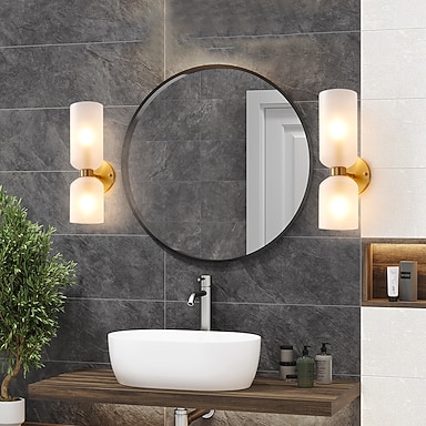 Lightinthebox Luminaires de salle de bain sur miroir, lumières de vanité dorées dans une applique murale intérieure en verre transparent, applique murale cylindrique moderne haut et bas, lampe murale
