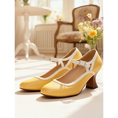 Sandales à boucle jaunes à bout ouvert pour femmes style années 1930 – chaussures de danse vintage à talon moyen pour soirées et événements formels