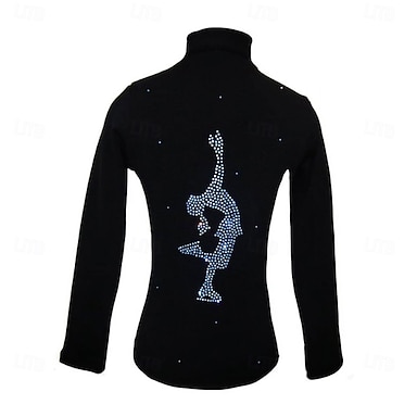 Veste polaire de patinage artistique Femmes Fille Patinage Veste Top Noir Patchwork Spandex Élastique Entraînement Compétition Tenue de Patinage Chaleur Thermique Classique cristal pailleté manche