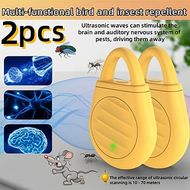 Lot de 2 répulsifs à ultrasons pour oiseaux et insectes, répulsif électronique portable contre les souris, les moustiques et les fourmis, portée efficace de 10 à 70 mètres, solution sûre et non