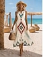 Robe longue froncée à imprimé floral géométrique en lin, idéale pour les vacances