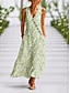 Femmes Robe Midi Robe d'été Vacances Plage Coupe régulière Fleuri Sans manches Col en V Bleu Blanche Vert Été Printemps