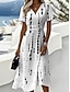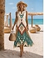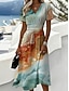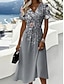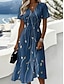 Femmes Robe Midi Robe trapèze Vacances Occasionnel Boho Coupe régulière Fleuri Graphique Manche Courte Col en V Bleu Blanche Vert Kaki Été Printemps