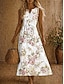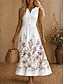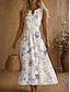 Robe Midi Femme En Lin Comme Robe D'Été Robe Tunique Robe A-Line Vacances Décontractée Boho Plage Fête Sortie Coupe Ample Imprimé Floral Sans Manches Col Ronde Blanc Vert Clair Rose Orange Été