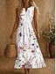 Femmes Robe Midi Robe d'Été Robe Décontractée Robe trapèze Élégant Vacances Plage Fête Coupe régulière Fleuri Graphique Sans manches Col en V Bleu Blanche Rose Claire Vert Été Printemps