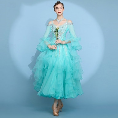 Danse de Salon Robe Fantaisie Cristaux / Stras Femme Utilisation Soirée manche longue Pleuche