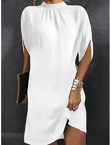 Femmes Mini Robe Robe Blanche Élégant Mode Moderne Extérieur Vacances Sortir Coupe Ample Uni Manche Courte Col ras du cou Bleu Noir Blanche Rose Claire Été Printemps