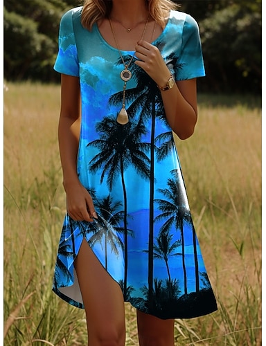 Femmes Mini Robe Robe T-Shirt Robe trapèze Robe d'été Occasionnel Quotidien Coupe régulière Fleuri Graphique Manche Courte Col Rond Bleu Jaune Orange Vert Été Printemps