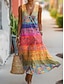 Femmes Robe Midi Robe d'Été Robe Décontractée Robe trapèze Élégant Vacances Plage Fête Coupe régulière Graphique Géométrique Sans manches Col en V Bleu Jaune Rouge Été Printemps
