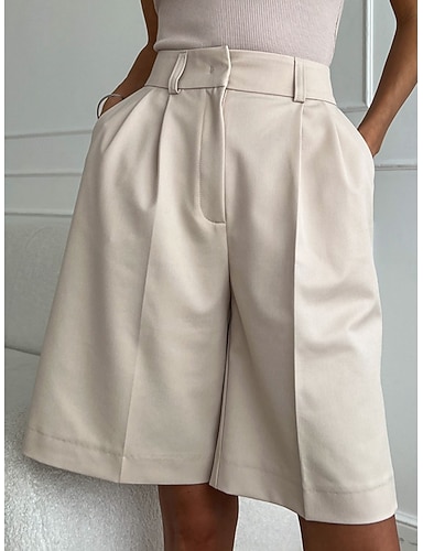 Femmes Faux coton lin Chinos Shorts Shorts d'été Vacances Streetwear Décontracté Quotidien Longueur Genou Taille moyenne Uni Avec Poches Confortable Respirant Non Elastique Quotidien Extérieur Bureau