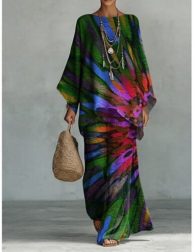 Femmes Chemise Ensembles en coton et lin Ensembles de Pantalons manche longue Manche cloche Col rond Graphique Teinture par nouage Imprimé Vacances Mode Streetwear Occasionnel Quotidien Extérieur