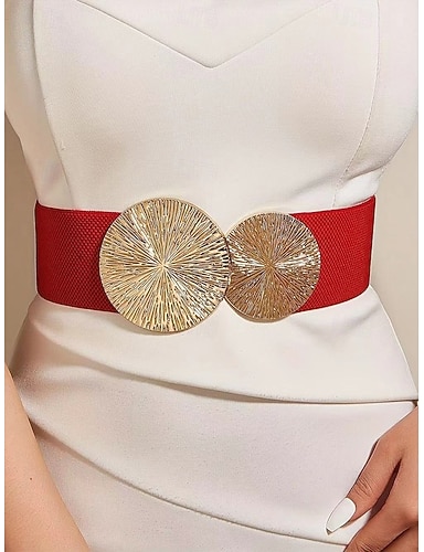 ceinture élastique pour femme avec boucle circulaire dorée - ceinture extensible large et tendance pour robes, occasions décontractées et formelles