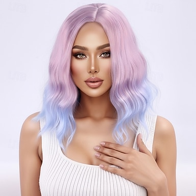 Perruque Synthétique Ondulé Vague d'eau Coupe Asymétrique Séparation profonde Fabriqué à la Machine Perruque 10 pouces A1 Cheveux synthétiques Femmes Cool Classique Confortable Multicolore