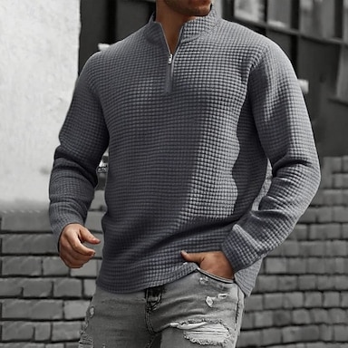 Homme Sweat-shirt Sweat-shirt quart de fermeture éclair Noir Blanche Vin Vert Véronèse Kaki Demi-zip Uni Jacquard A côtes Quart de zip Texturé Sport & Loisir Quotidien Fête Polyester Streetwear