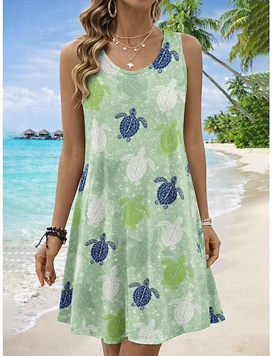 Femmes Mini Robe Robe d'Été Robe trapèze Robe d'été Vacances Occasionnel Boho Plage Soirée Mariage Coupe régulière Graphique Animal Sans manches Col en U Col Rond Bleu Blanche Orange Vert Ét