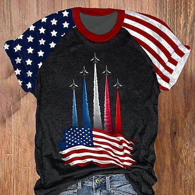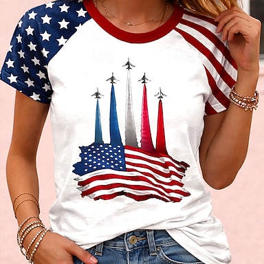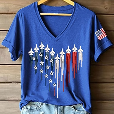 Jour de l'Indépendance Américaine Femmes Chemisier Imprimé Drapeau Occasionnel Manche Courte Col en V Hauts Réguliers Quotidien bleu marine Kaki Rouge / Bleu Bleu clair Été Printemps