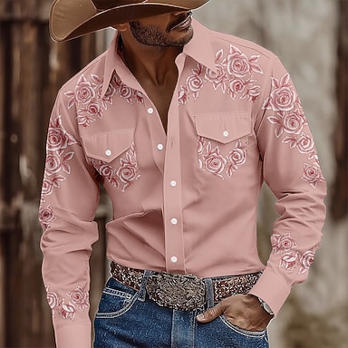 Homme Imprimé Floral Fleurs Chemise Chemise Western Chemise de cow-boy manche longue Vintage Rétro Extérieur Occasionnel Vêtements de travail Printemps Automne Col Rabattu Deux poches avant Chemises
