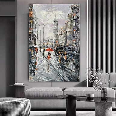 Peinture à l'huile faite à la main sur toile, décoration murale, paysage architectural abstrait, paysage de Londres pour la décoration intérieure, peinture roulée sans cadre, non étirée