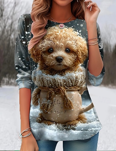 Femmes T-shirt Imprimé Graphique Géométrique Plantes ancien Élégant Occasionnel manche longue Col ras du cou Hauts Réguliers Quotidien Week-end Bleu Noir Vin Violet Printemps Automne Hiver