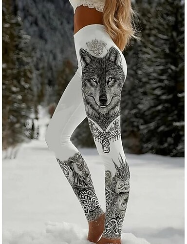 Femmes Leggings Vacances ancien Mode Longueur complète Taille haute Fleuri Graphique Animal Impression Chaleur Thermique Doux Respirant Élastique Quotidien Extérieur Vacances Noir Beige Printemps