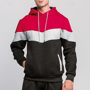 Homme Sweat à capuche Noir Rouge Bordeaux bleu marine Kaki Gris À capuche Uni Patchwork Bloc de Couleur Sport & Loisir Occasionnel Quotidien Streetwear Frais Vêtements de sport Printemps & Automne