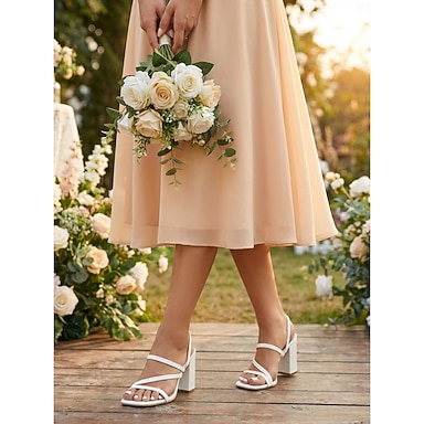 Sandales blanches à talons carrés pour femmes - chaussures élégantes pour demoiselles d'honneur, idéales pour un mariage au jardin ou une cérémonie en extérieur, talons confortables pour l'été