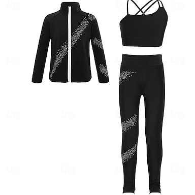 Veste et pantalon de patinage artistique pour femmes et filles, tenue de patinage sur glace noire extensible, vêtements d'entraînement et de compétition chauds et thermiques, ornés de cristaux et de
