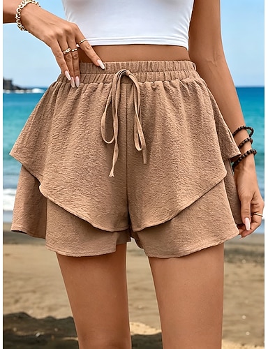 Femmes Shorts Shorts d'été Shorts de plage Shorts amples Vacances Mode Décontracté Quotidien Court Taille haute Couleur Unie Uni Cordon de serrage Avec Poches Ceinture Élastique Confort Séchage