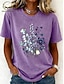 Femmes T-shirt Imprimé Lavage à l'acide Lavage vintage Graphique Plantes Lettre Élégant Basique Classique Manche Courte Col rond Hauts Réguliers Occasionnel Quotidien Bleu Noir Rose Claire Violet Vert