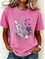 Femmes T-shirt Imprimé Graphique Animal Dessin animé Élégant Classique Occasionnel Manche Courte Col ras du cou Col rond Hauts Réguliers Quotidien Bleu Blanche Rose Claire Orange Été Printemps