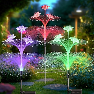 Lot de 2 lampes solaires méduses pour jardin, étanches, avec éclairage solaire de nénuphar pour pelouse, couleurs RGB changeantes, décoration d'ambiance pour Noël, mariage, vacances, camping, fêtes et