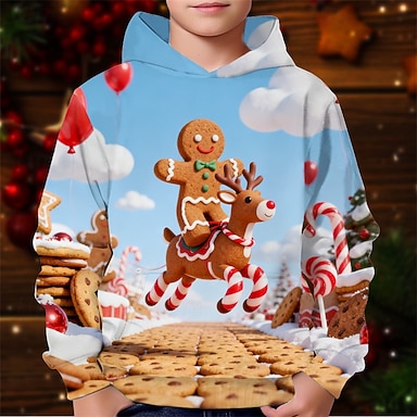 Noël Garçons 3D Graphique Bonhomme en pain d'épices Sweat à Capuche manche longue Printemps Automne Mode Streetwear Enfants 4-12 ans À capuche Extérieur Occasionnel Quotidien Coupe régulière