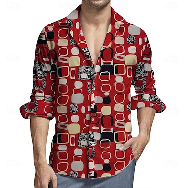 Rétro Vintage Années 1970 Chemise Chemise Aloha Hippie Géométrique Déguisement Homme Mascarade Soirée Tenue quotidienne Défilé de la Fierté Adulte Chemise