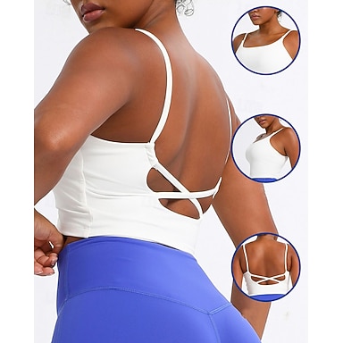 Femmes Couleur Unie Brassière de Sport Haut de sport Soutien-Gorges de Sport Sans manches Dos nu Absorption des chocs Respirant Course Fitness Yoga Col Rond Soutien-Gorges de Sport Débardeur arrière