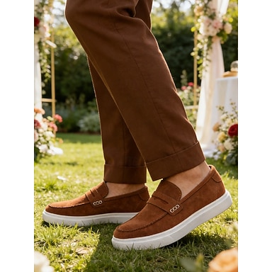 Mocassins marron pour homme, à enfiler, avec bride, chaussures tendance et confortables pour les occasions décontractées et semi-formelles, parfaites pour le bureau, les tenues décontractées, les sorties du week-end et les mariages.