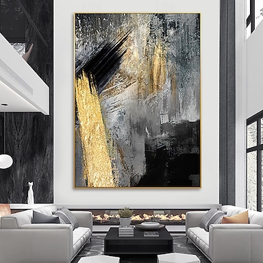 Peinture à l'huile faite main, art mural abstrait noir, blanc et or, affiche murale, art mural abstrait gris et or, décoration murale pour salon