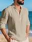 Homme Chemise Chemise en lin Chemise popover Chemise d'été Chemise Décontractée Chemise de Plage Uni Vacances Occasionnel Noir Blanche Kaki Gris foncé manche longue Band Collar Printemps Automne