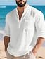 Homme Chemise Chemise en lin Chemise popover Chemise Décontractée Chemise en coton Uni Vacances Hawaïen Noir Blanche Rose dragée Orange manche longue Band Collar Printemps Automne Vêtement Tenue