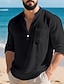 Homme Chemise Chemise en lin et coton Chemise en coton blanc Chemise décontractée Plein Hawaïen Vacances Noir Blanche Jaune bleu marine Manches 3/4 Col V Printemps été Vêtement Tenue