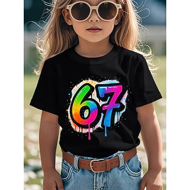 Coton Enfants Fille Noir Graphique Argot drôle 67 T-shirt Col Rond Manche Courte Vacances Sport & Loisir Tenue Quotidienne Vacances Sports Occasionnel Impression Été