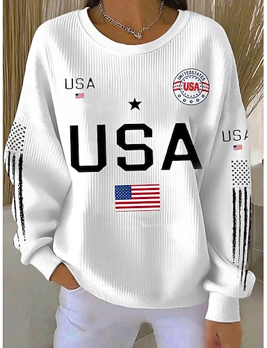 Pull en sweat texturé patriotique pour femmes pour le jour de l'Indépendance graphique lettres décontracté à manches longues col rond haut régulier style casual maison rue blanc printemps automne