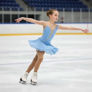 Robe de Patinage Artistique Femme Fille Patinage Robes Violet Pourpre foncé Bleu Ciel Maille Spandex Haute élasticité Compétition Tenue de Patinage Conception anatomique Séchage rapide Fait à la main