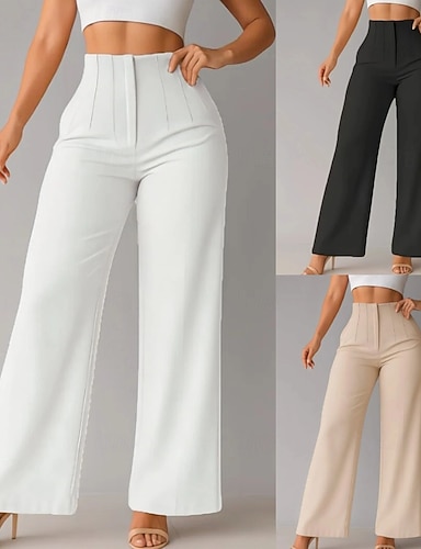 Femmes Jambe large Chinos Élégant Mode Streetwear Longueur complète Taille haute Uni Confortable Doux Micro-Élastique Extérieur Bureau Rue Bleu Noir Blanche Marron Printemps Automne Coupe Ample