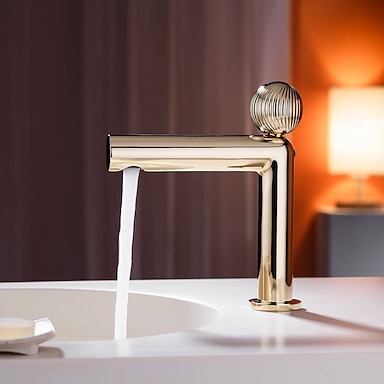 robinet de lavabo de salle de bain - bec standard à une mitigeur un trou central chromé galvanisé centre chromé or