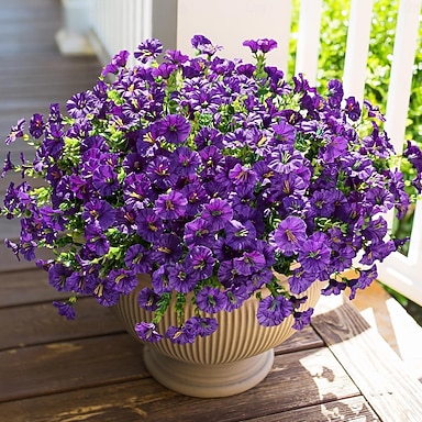 Fleurs violettes artificielles d'extérieur, bouquets de 12/24 fleurs en soie artificielle résistantes aux UV, fleurs printanières artificielles pour jardinières d'extérieur, jardin d'intérieur,